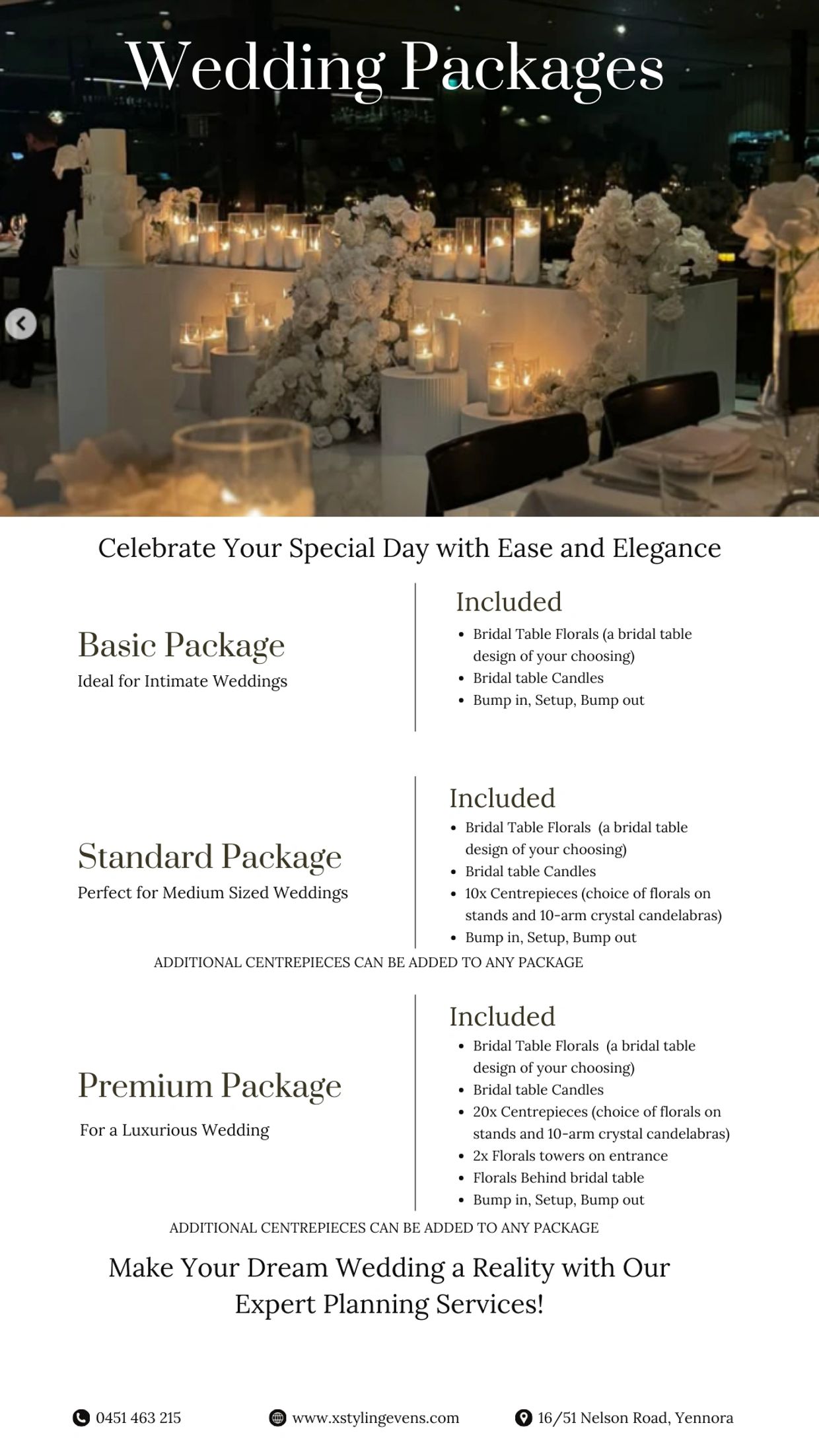 At X Styling Events, we believe your wedding should be a reflection of your unique love story. Our wedding packages are designed to cater to every couple’s vision, providing the perfect blend of elegance, creativity, and personalization.